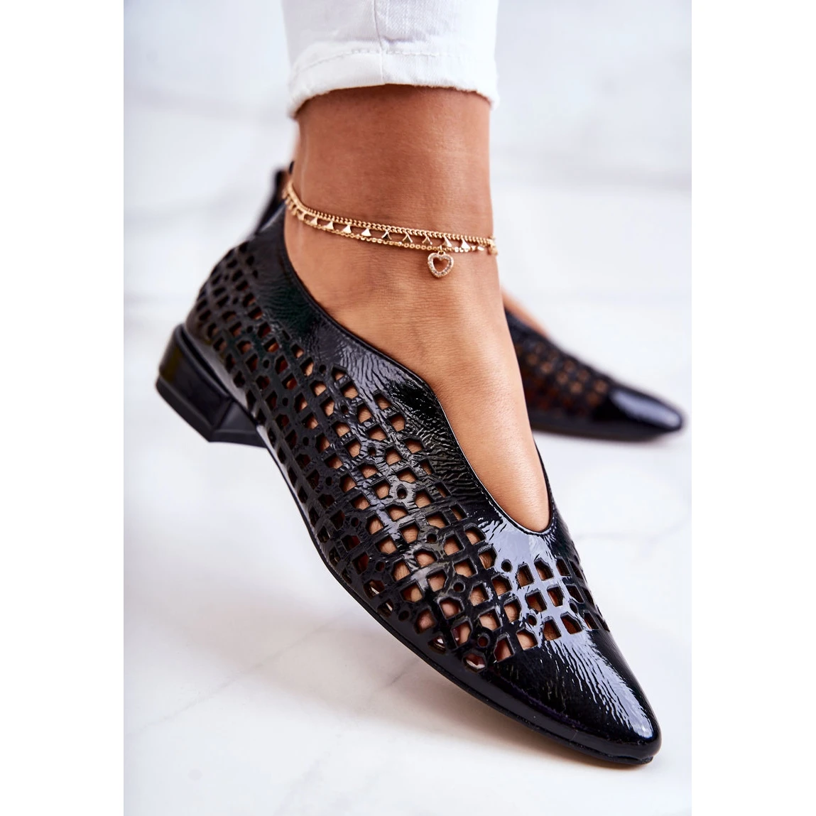 Jolies chaussures en cuir naturel avec un motif ajouré. Bout pointu. La semelle intérieure en cuir naturel assure un grand confort d’utilisation. Un talon plat assurera la stabilité. Les chaussures sont à la mode et élégantes. Ils voleront sûrement votre cœur! Ce modèle sera parfait pour des stylisations élégantes, par exemple pour des fêtes de famille ou des réunions d’affaires. Lorsque vous choisissez une taille, veuillez utiliser le tableau des tailles.