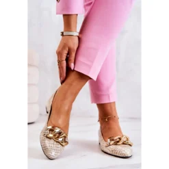 Les chaussures sont en cuir naturel de haute qualitĂ©. Ils ont un insert en cuir souple, en plus profilĂ© et perforĂ©. La chaĂźne Ă©lĂ©gante leur donne un aspect vraiment spĂ©cial. Talon bas en forme de tige, ce qui les rend trĂšs agrĂ©ables Ă porter pendant de nombreuses heures. VĂ©rifiez Ă©galement d’autres modĂšles de pompes! Lorsque vous choisissez une taille, veuillez utiliser le tableau des tailles.