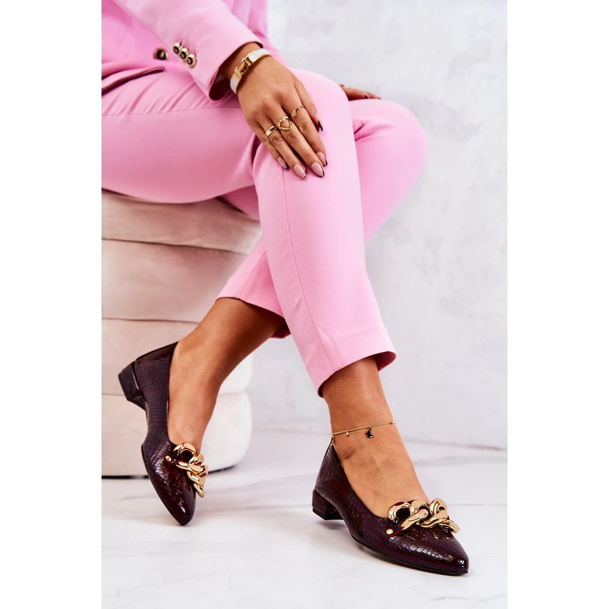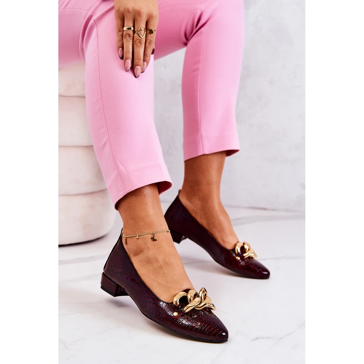 Les chaussures sont en cuir naturel de haute qualitĂ©. Ils ont un insert en cuir souple, en plus profilĂ© et perforĂ©. La chaĂ®ne Ă©lĂ©gante leur donne un aspect vraiment spĂ©cial. Talon bas en forme de tige, ce qui les rend très agrĂ©ables Ă porter pendant de nombreuses heures. VĂ©rifiez Ă©galement d’autres modèles de pompes! Lorsque vous choisissez une taille, veuillez utiliser le tableau des tailles.