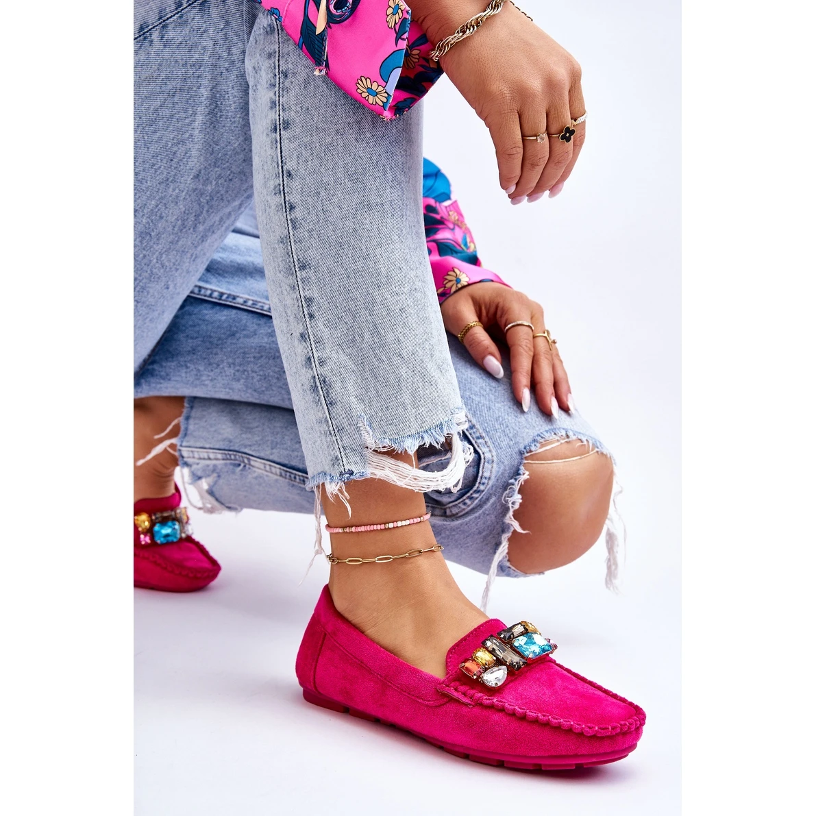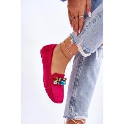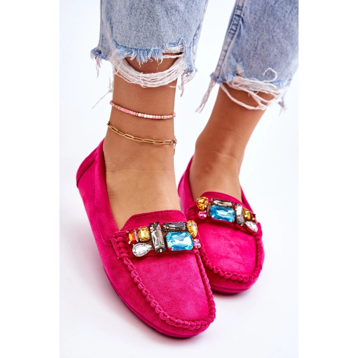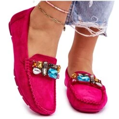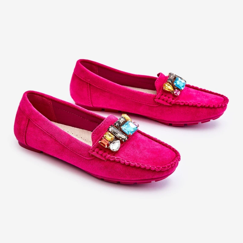 Classiques, les mocassins pour femmes sont fabriqués en daim écologique. Sur le devant, il y a des cristaux décoratifs colorés. Les mocassins ont été montés sur une semelle au profil délicat. La semelle intérieure souple est en outre perforée et en cuir naturel. Un excellent modèle pour de nombreuses stylisations printemps-été ! Lorsque vous choisissez une taille, veuillez utiliser le tableau des tailles.