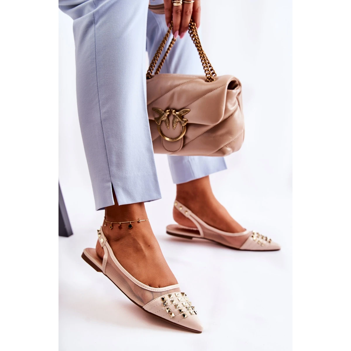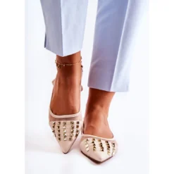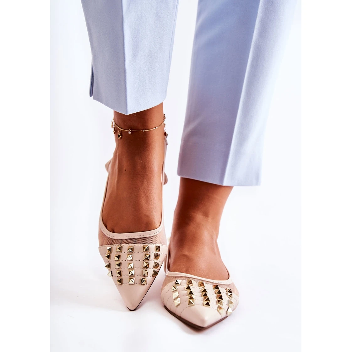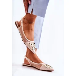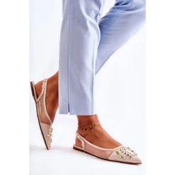 Les ballerines Ă la mode avec un talon ouvert sont faites d’une combinaison de cuir Ă©cologique et d’un matĂ©riau respirant. L’Ă©lastique cousu facilite l’enfilage et permet aux chaussures de mieux s’adapter au pied. Une semelle intĂ©rieure en cuir Ă©cologique doux assurera le confort lors de l’utilisation. MontĂ©e sur des talons bas. Devant cloutĂ© avec des clous Ă bout pointu. N’oubliez pas de jeter un coup d’Ĺ“il Ă toute notre collection de ballerines ! Lorsque vous choisissez une taille, veuillez utiliser le tableau des tailles.