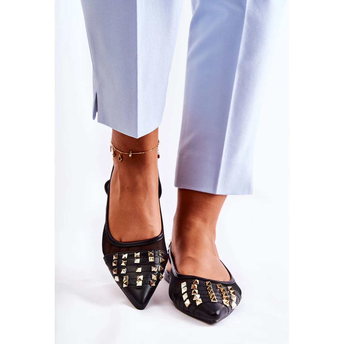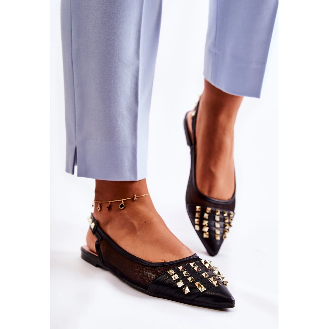 Les ballerines à la mode avec un talon ouvert sont faites d’une combinaison de cuir écologique et d’un matériau respirant. L’élastique cousu facilite l’enfilage et permet aux chaussures de mieux s’adapter au pied. Une semelle intérieure en cuir écologique doux assurera le confort lors de l’utilisation. Montée sur des talons bas. Devant clouté avec des clous à bout pointu. N’oubliez pas de jeter un coup d’œil à toute notre collection de ballerines ! Lorsque vous choisissez une taille, veuillez utiliser le tableau des tailles.