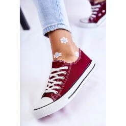 Baskets classiques pour femmes nouées. Les chaussures ont une semelle en caoutchouc, qui est en outre antidérapante. La tige souple est en matière textile. Un modèle intemporel à avoir dans sa garde-robe ! Pointe renforcée avec du caoutchouc. La semelle intérieure en matériau confortable assurera le confort lors de l’utilisation. Lorsque vous choisissez une taille, veuillez utiliser le tableau des tailles.