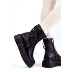 Les bottes pour femmes sont fabriquées en cuir naturel de haute qualité. Situé sur une plate-forme massive avec un coin délicat. Les tiges sont fermées sur le côté avec une fermeture éclair, tandis que la fermeture éclair à l’arrière est décorative. De plus, les bottes ont un talon raidi. Intérieur isolé avec une couverture. Ce modèle fera sûrement ses preuves dans de nombreuses stylisations automnales ! Lorsque vous choisissez une taille, veuillez utiliser le tableau des tailles