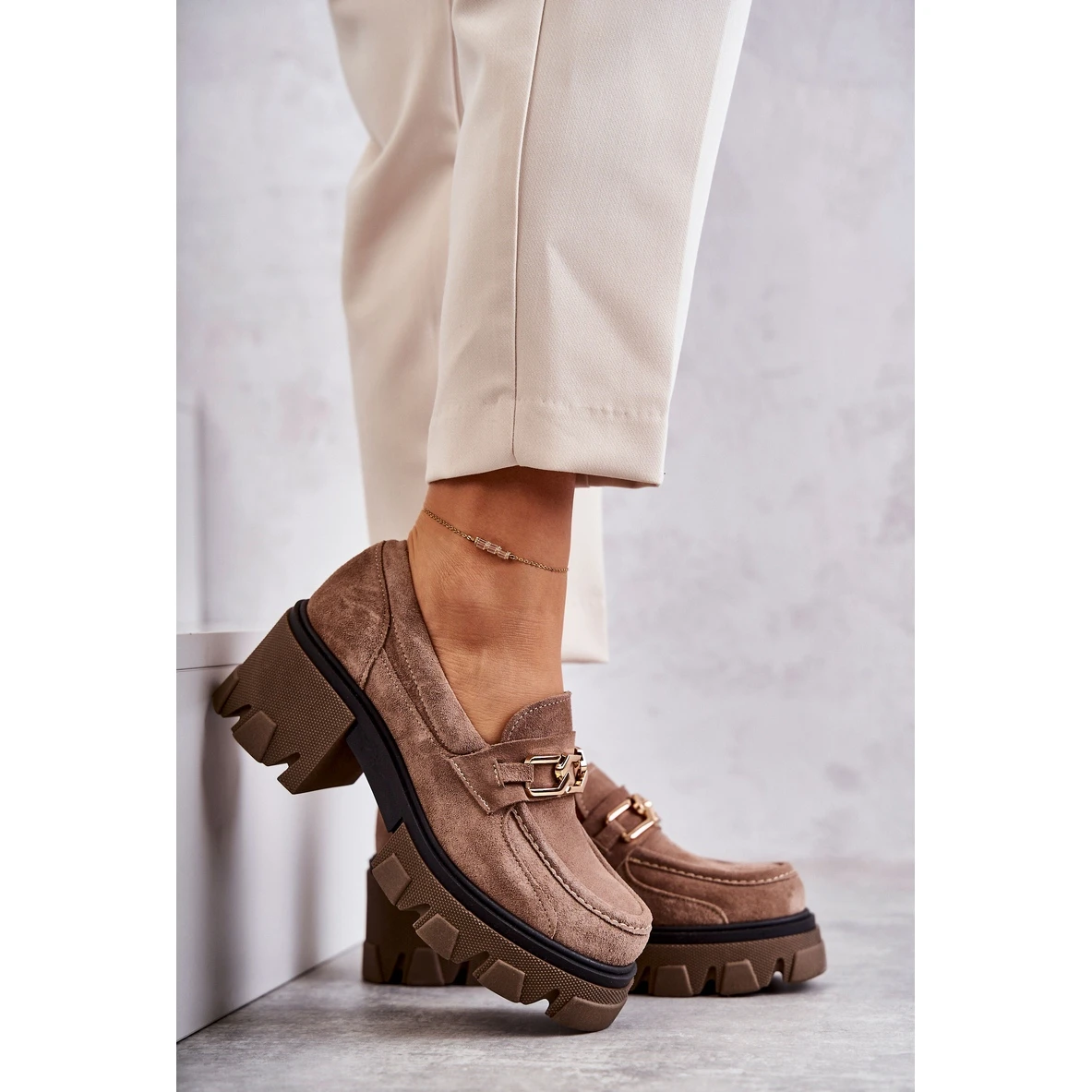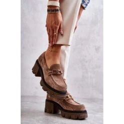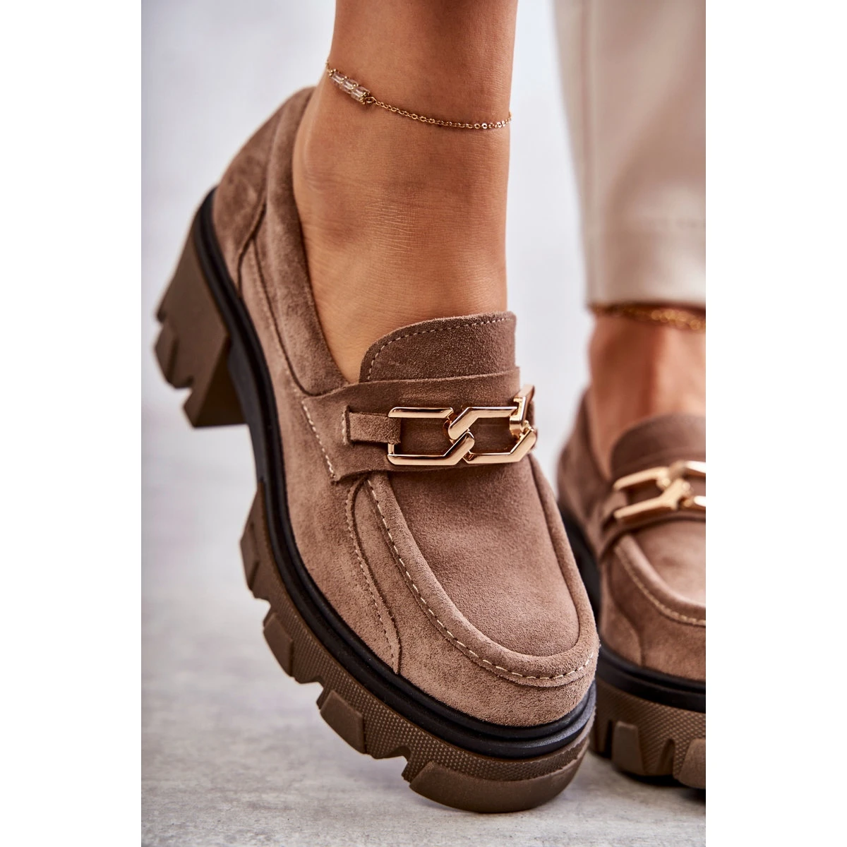 Les chaussures pour femmes uniques vous raviront par leur apparence et leur confort lors de l’utilisation. Fabriqué en daim naturel. Ils ont un ornement de chaîne sur le devant. De plus, le contrefort de talon est renforcé. Les chaussures sont montées sur une plate-forme massive et un talon plat en caoutchouc. De plus, ils sont antidérapants. Modèle extrêmement confortable avec une semelle intérieure en cuir naturel. Lorsque vous choisissez une taille, veuillez utiliser le tableau des tailles.
