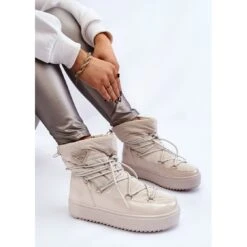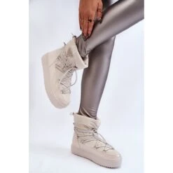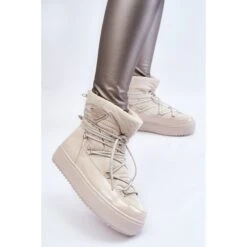 Les bottes de neige pour femmes sont faites de matériaux résistants au vent et au gel combinés avec du cuir écologique. Modèle à enfiler avec laçage supplémentaire à l’avant et passepoil en haut de la tige. Les bottes de neige ont été isolées avec une fourrure agréable au toucher. Encastré sur une plate-forme qui isole du sol froid et humide. Ce modèle devrait être le vôtre ! Lorsque vous choisissez une taille, veuillez utiliser le tableau des tailles.