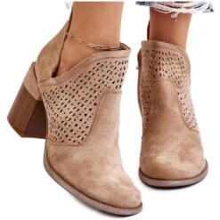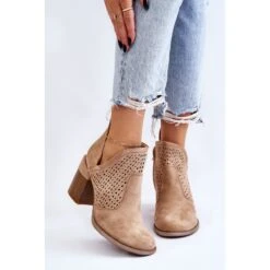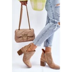 Les bottes avec une découpe à la cheville sont en outre décorées d’un motif ajouré. Fabriqué en daim écologique doux au toucher. Montée sur un talon massif en forme de bloc. Ce modèle a une fermeture éclair sur le côté de la tige. Le contrefort de talon de ces bottes est renforcé. La semelle intérieure douce et confortable est en cuir écologique. Ce modèle étonnant devrait être dans votre garde-robe ! Lorsque vous choisissez une taille, veuillez utiliser le tableau des tailles.