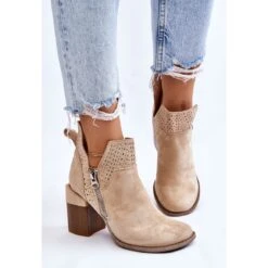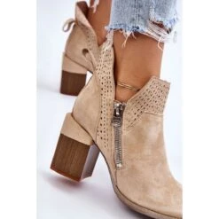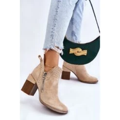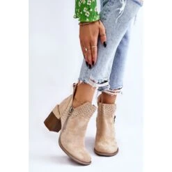 Les bottes à la mode avec un talon massif en forme de bloc sont en daim écologique avec des découpes sur les côtés de la tige. De plus, ils étaient décorés d’un motif ajouré. Ce modèle a une fermeture éclair supplémentaire sur le côté de la tige. Le contrefort de talon de ces bottes est renforcé. La semelle intérieure douce et confortable est en cuir écologique. Vous devriez avoir ce modèle dans votre garde-robe ! Lorsque vous choisissez une taille, veuillez utiliser le tableau des tailles.