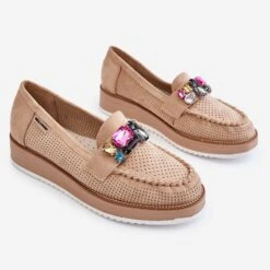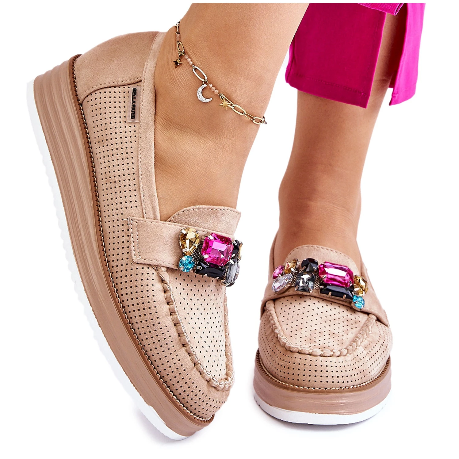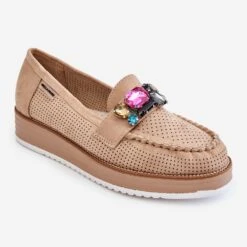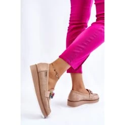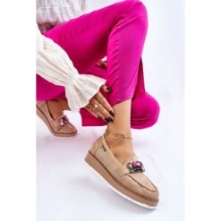 De beaux mocassins pour femmes Ă©taient montĂ©s sur un talon compensĂ© et une plate-forme dĂ©licats. Fait d’un matĂ©riau ressemblant Ă du daim Ă©cologique. La semelle intĂ©rieure souple en cuir naturel vous assurera un confort d’utilisation, mĂŞme tout au long de la journĂ©e ! Sur le devant, il y a des Ă©lĂ©ments dĂ©coratifs imitant les zircons. Un excellent modèle pour les stylisations printanières et automnales ! Lorsque vous choisissez une taille, veuillez utiliser le tableau des tailles.