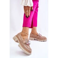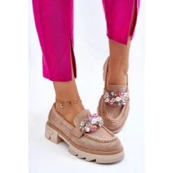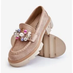 Les chaussures de style mocassin pour femmes à la mode ont été montées sur un talon plat massif et une plate-forme. Décoré de perles sur le devant. Fait d’un matériau ressemblant à du daim écologique. La semelle intérieure souple en cuir naturel assurera le confort lors de l’utilisation. Tige à motif ajouré. Un excellent modèle pour de nombreux styles. Parfait pour la saison printemps-automne ! Lorsque vous choisissez une taille, veuillez utiliser le tableau des tailles.