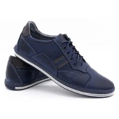 Les chaussures pour hommes avec une coupe sportive sont un confort au quotidien pour les hommes qui aiment les chaussures confortables, mais veulent en même temps que les chaussures soient belles. Ces chaussures pour hommes sont en cuir grainé naturel, faciles à garder parfaitement propres. La doublure intérieure est également en cuir naturel. Grâce à cela, une bonne circulation de l’air est maintenue. Ces chaussures pour hommes sont le choix parfait pour un usage quotidien, les chaussures en cuir pour hommes sont disponibles en plusieurs couleurs tendance. Les rayures contrastées sont une diversion intéressante. La semelle souple rend leur port très confortable et les chaussures s’adaptent à la forme du pied. Les lacets donnent à ces chaussures pour hommes des allures de baskets de sport. Vous pouvez les porter, par exemple, avec un jean. Ils sont le choix parfait pour le printemps et l’automne, mais aussi pour l’été. Des chaussures légères à lacets peuvent également être un élément de style de vacances. Les chaussures pour hommes fabriquées par un fabricant polonais sont d’excellente qualité. Avec des soins appropriés, ils conservent leur beauté pendant longtemps.