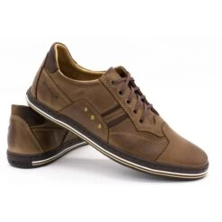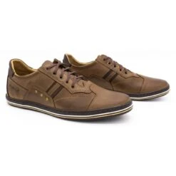 Les chaussures pour hommes avec une coupe sportive sont un confort au quotidien pour les hommes qui aiment les chaussures confortables, mais veulent en même temps que les chaussures soient belles. Ces chaussures pour hommes sont en cuir grainé naturel, faciles à garder parfaitement propres. La doublure intérieure est également en cuir naturel. Grâce à cela, une bonne circulation de l’air est maintenue. Ces chaussures pour hommes sont le choix parfait pour un usage quotidien, les chaussures en cuir pour hommes sont disponibles en plusieurs couleurs tendance. Les rayures contrastées sont une diversion intéressante. La semelle souple rend leur port très confortable et les chaussures s’adaptent à la forme du pied. Les lacets donnent à ces chaussures pour hommes des allures de baskets de sport. Vous pouvez les porter, par exemple, avec un jean. Ils sont le choix parfait pour le printemps et l’automne, mais aussi pour l’été. Des chaussures légères à lacets peuvent également être un élément de style de vacances. Les chaussures pour hommes fabriquées par un fabricant polonais sont d’excellente qualité. Avec des soins appropriés, ils conservent leur beauté pendant longtemps.