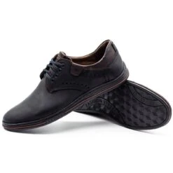 Chaussures en cuir pour hommes avec pantoufles. Ce modèle est à la fois pratique et confortable. Les chaussures sont entièrement en cuir naturel (intérieur et extérieur). Ils sont fabriqués en Pologne par des entreprises nationales et reconnues. Un avantage supplémentaire est la coupe intemporelle qui permet de combiner ces chaussures en cuir pour hommes avec une garde-robe dans le style de l’élégance sportive. Les chaussures sont lacées, ce qui les rend très faciles à enfiler. Les chaussures en cuir pour hommes se distinguent par des coutures contrastées, ce qui les rend plus intéressantes. Les chaussures sont disponibles en plusieurs coloris. Les chaussures pour hommes en cuir s’adaptent parfaitement au pied, garantissant le confort de port. Les brogues sont parfaits pour le printemps et l’automne. Ils peuvent être combinés avec un jean, mais aussi avec d’autres pantalons. Ils sont adaptés pour le travail, mais aussi pour les sorties de l’après-midi.