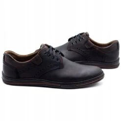 Chaussures en cuir pour hommes avec pantoufles. Ce modèle est à la fois pratique et confortable. Les chaussures sont entièrement en cuir naturel (intérieur et extérieur). Ils sont fabriqués en Pologne par des entreprises nationales et reconnues. Un avantage supplémentaire est la coupe intemporelle qui permet de combiner ces chaussures en cuir pour hommes avec une garde-robe dans le style de l’élégance sportive. Les chaussures sont lacées, ce qui les rend très faciles à enfiler. Les chaussures en cuir pour hommes se distinguent par des coutures contrastées, ce qui les rend plus intéressantes. Les chaussures sont disponibles en plusieurs coloris. Les chaussures pour hommes en cuir s’adaptent parfaitement au pied, garantissant le confort de port. Les brogues sont parfaits pour le printemps et l’automne. Ils peuvent être combinés avec un jean, mais aussi avec d’autres pantalons. Ils sont adaptés pour le travail, mais aussi pour les sorties de l’après-midi.