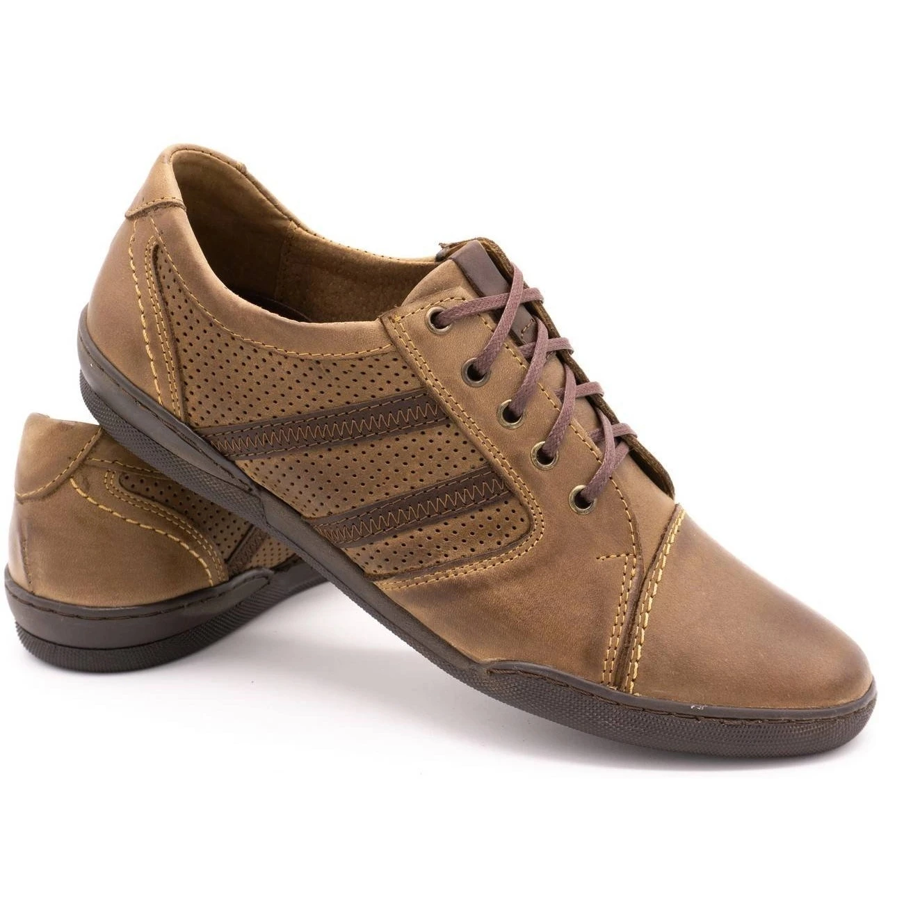 Les chaussures décontractées pour hommes sont entièrement fabriquées en cuir naturel de la plus haute qualité. Ce qui distingue ces chaussures, c’est la perforation ajourée. Les petites ouvertures améliorent la ventilation de l’intérieur des chaussures pour hommes, mais affectent également l’effet visuel. Les chaussures pour hommes sont le produit d’artisans polonais, en coopération avec des designers qui savent quelles chaussures pour hommes sont les plus à la mode. Ils sont disponibles en plusieurs couleurs sobres, adaptées à la période du printemps à l’automne.