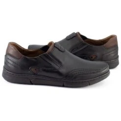 Ce modèle est à la fois pratique et confortable. Les chaussures sont entièrement en cuir naturel (intérieur et extérieur). Ils sont fabriqués en Pologne par des entreprises nationales et reconnues. Un avantage supplémentaire est la coupe intemporelle qui permet de combiner ces chaussures en cuir pour hommes avec une garde-robe dans le style de l’élégance sportive. Les chaussures sont à enfiler, ce qui les rend très faciles à enfiler. Les chaussures pour hommes en cuir s’adaptent parfaitement au pied, garantissant le confort de port. Les brogues sont parfaits pour le printemps et l’automne. Ils peuvent être combinés avec un jean, mais aussi avec d’autres pantalons. Ils sont adaptés pour le travail, mais aussi pour les sorties de l’après-midi.