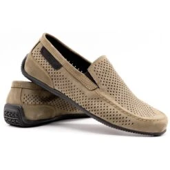 Les mocassins en cuir pour hommes sont des chaussures sans lesquelles il est difficile d’imaginer la stylisation d’un homme à la mode pendant la période la plus chaude de l’année. Ils se marient bien avec des pantalons plus légers, comme ceux en lin. Comme ils sont le plus souvent portés directement pieds nus, il est important de faire attention à la qualité de fabrication. Les mocassins pour hommes présentés sont entièrement en cuir. Le matériau extérieur est en cuir naturel, tandis que l’intérieur a également une semelle intérieure en cuir. Grâce à cela, les chaussures assurent une circulation d’air parfaite et empêchent les pieds de transpirer même à des températures extérieures élevées. Les mocassins pour hommes sont à enfiler, ils s’enfilent donc très rapidement. Le caoutchouc délicat sur les côtés permet de les mettre plus facilement sur le pied et rend également les chaussures parfaitement ajustées. La semelle légère et souple augmente le confort d’utilisation au quotidien. Les mocassins pour hommes deviendront assurément vos chaussures préférées au quotidien.