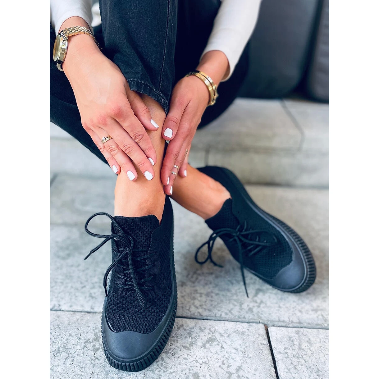 Baskets à lacets pour femmes. Elles sont réalisées en tissu chaussette avec un délicat motif ajouré. Ils ont une semelle haute en caoutchouc, ce qui les rend incroyablement confortables. Vous devez le découvrir par vous-même 🙂 L’intérieur des chaussures est doublé de tissu.