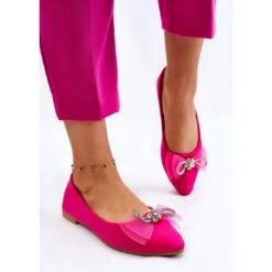 Elégantes, les ballerines femme sont en matière textile. Ce modèle a un noeud sur le devant et des strass imitant les strass. Nez pointu. Les ballerines sont des chaussures avec lesquelles vous pouvez créer de nombreuses stylisations. Ils seront parfaits pour diverses occasions importantes. La semelle intérieure souple en cuir écologique assurera le confort lors de l’utilisation. Lorsque vous choisissez une taille, veuillez utiliser le tableau des tailles.