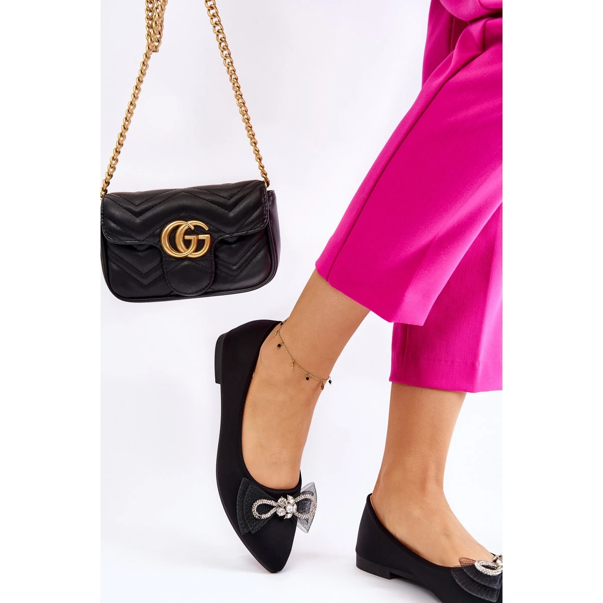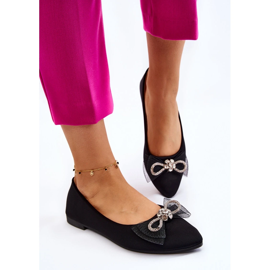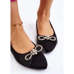 Elégantes, les ballerines femme sont en matière textile. Ce modèle a un noeud sur le devant et des strass imitant les strass. Nez pointu. Les ballerines sont des chaussures avec lesquelles vous pouvez créer de nombreuses stylisations. Ils seront parfaits pour diverses occasions importantes. La semelle intérieure souple en cuir écologique assurera le confort lors de l’utilisation. Lorsque vous choisissez une taille, veuillez utiliser le tableau des tailles.