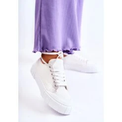 Les baskets pour femmes sont en matière textile. Intégré sur une plate-forme en caoutchouc, qui est en outre antidérapant. Bout arrondi, renforcé avec du caoutchouc. Le modèle est classiquement noué avec des lacets plats. Les baskets classiques conviennent à de nombreux styles. Un modèle confortable, parfait pour les activités du quotidien. La semelle intérieure en matériau assure un confort lors de l’utilisation. Lorsque vous choisissez une taille, veuillez utiliser le tableau des tailles.