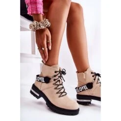 Bottes à la mode en daim écologique. Ils ont un contrefort de talon rigide. Un modèle avec une fixation classique et une fermeture éclair sur le côté de la tige. Les bottes ont une sangle amovible avec l’inscription. Elles sont posées sur une plateforme délicate et un talon plat à rainures. De plus, le talon est décoré d’un élément miroir. L’intérieur est isolé avec une couverture agréable au toucher. Lorsque vous choisissez une taille, veuillez utiliser le tableau des tailles.