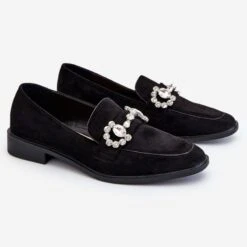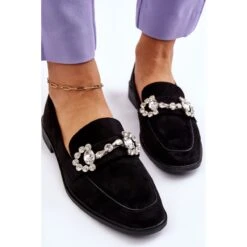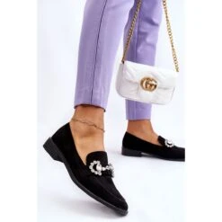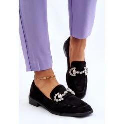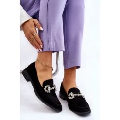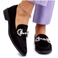 Mocassins pour femmes avec empiècement en cuir écologique doux. Ces chaussures ont une décoration élégante sur le devant sous forme de cristaux d’imitation. Montée sur un talon plat avec une semelle antidérapante. Un modèle classique, parfait pour de nombreux styles ! N’oubliez pas de consulter également les autres modèles de mocassins disponibles dans notre offre ! Lorsque vous choisissez une taille, veuillez utiliser le tableau des tailles.