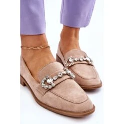 Mocassins pour femmes avec empiècement en cuir écologique doux. Ces chaussures ont une décoration élégante sur le devant sous forme de cristaux d’imitation. Montée sur un talon plat avec une semelle antidérapante. Un modèle classique, parfait pour de nombreux styles ! N’oubliez pas de consulter également les autres modèles de mocassins disponibles dans notre offre ! Lorsque vous choisissez une taille, veuillez utiliser le tableau des tailles.