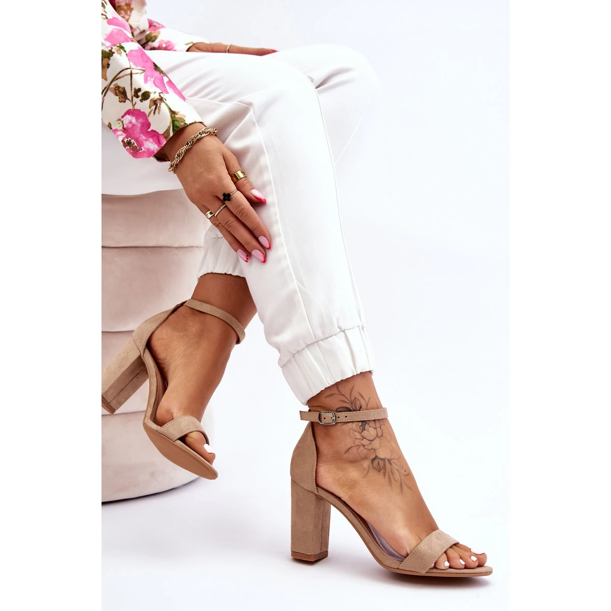Sandales classiques pour femmes montĂ©es sur un talon en forme de poteau d’Ă©curie. Les chaussures sont en daim Ă©cologique. Le confort d’utilisation sera assurĂ© par une semelle intĂ©rieure douce en Ă©co-cuir. Les sandales sont fermĂ©es par une sangle rĂ©glable avec une boucle. Ces chaussures ont un bout ouvert en amande. Le contrefort de talon renforcĂ© stabilise parfaitement le pied. N’oubliez pas de jeter un coup d’Ĺ“il Ă toute notre collection de sandales Ă talons hauts ! Lorsque vous choisissez une taille, veuillez utiliser le tableau des tailles.