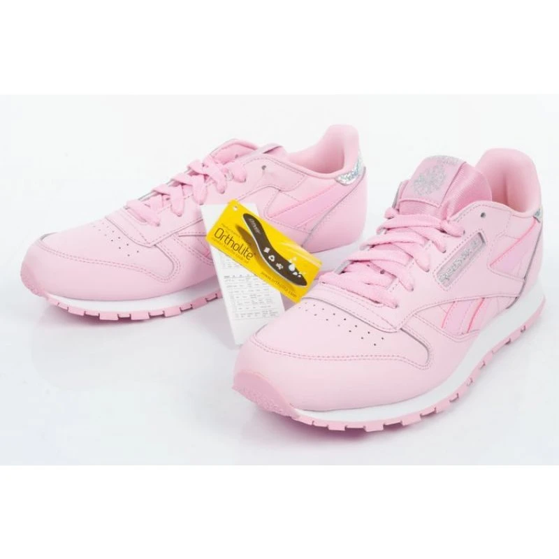 - La chaussure présentée est le modèle Classic Leather Pastel de Reebok.