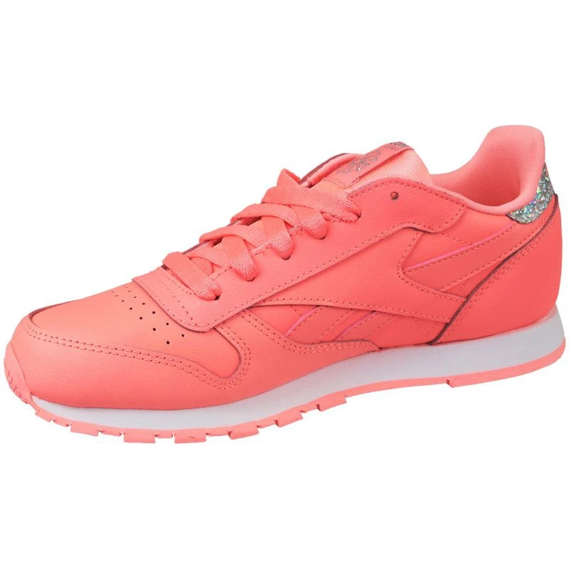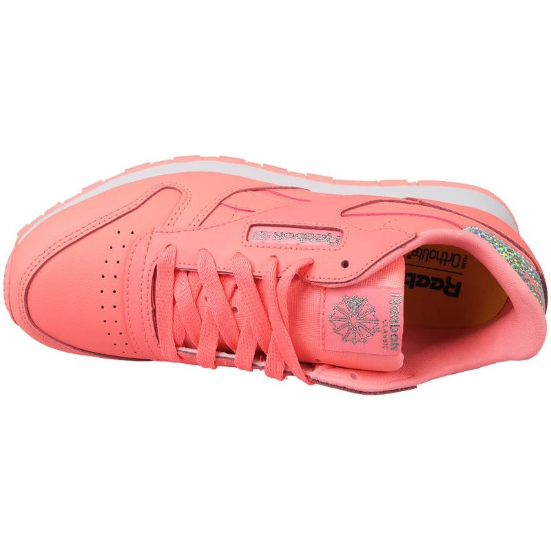 Les chaussures de sport pour enfants Reebok sont fabriquĂ©es en cuir naturel de haute qualitĂ© de couleur rose. Les tiges douces et durables sont montĂ©es sur une semelle synthĂ©tique solide avec une petite plate-forme d’une hauteur de 2 cm, qui offre une excellente isolation du sol. Les ouvertures dans la partie avant de la tige sont responsables de la ventilation, assurant le confort pendant l’activitĂ©. Ces chaussures sont nouĂ©es avec des lacets, ont un identifiant de fabricant visible, des inserts textiles confortables et un contrefort de talon ornĂ© d’un insert holographique.