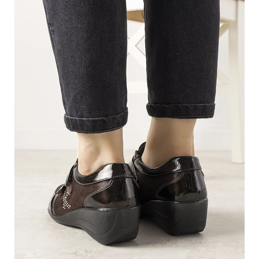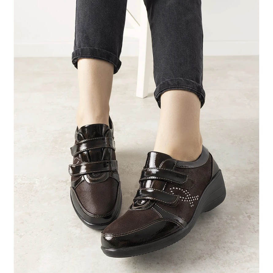 Les chaussures Tiffy sont un modèle parfait pour les chaudes journées d’automne. La tige est composée d’une combinaison de cuir écologique verni et d’éco-suède. Ils sont fixés avec du velcro. Le modèle a une semelle intérieure très douce. Numérotation standard, veuillez suivre votre taille.
