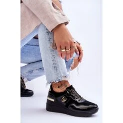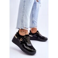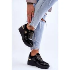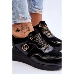 Confortables, les chaussures de sport pour femme ont été montées sur un talon compensé. Les baskets sont en cuir naturel avec une décoration ajourée sur le devant de la tige. De plus, les lacets ont un ourlet brillant. La semelle intérieure Comfort est en cuir naturel. Vous aimerez sûrement ce modèle ! Lorsque vous choisissez une taille, veuillez utiliser le tableau des tailles.