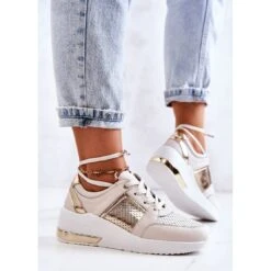 Baskets classiques avec une touche moderne ! Fabriqué en cuir naturel de haute qualité, qui est en outre perforé. Les chaussures de sport légères ont également une semelle intérieure confortable en cuir naturel. La plate-forme avec le coin est en plastique. De plus, il y a un élément miroir dans le coin. Le modèle est classiquement noué avec des lacets plats. Nez arrondi. Vous devez absolument avoir ce modèle dans votre garde-robe ! Lorsque vous choisissez une taille, veuillez utiliser le tableau des tailles.