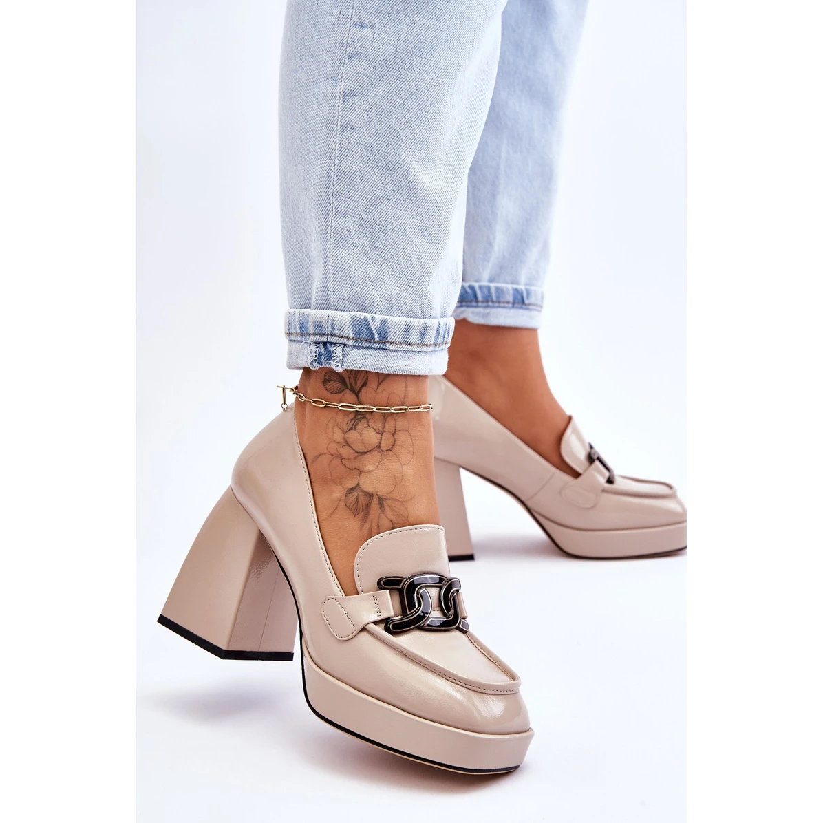 Superbes escarpins sur un talon massif en forme de bloc supérieur. Ils sont faits de cuir écologique. De plus, elles ont un élément décoratif sur le devant et un contrefort de talon renforcé. La semelle intérieure est douce et en cuir naturel, ce qui affecte considérablement le confort d’utilisation. Ce modèle est un HIT, alors n’attendez plus et achetez-le aujourd’hui ! Lorsque vous choisissez une taille, veuillez utiliser le tableau des tailles.