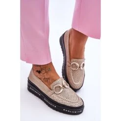 Les mocassins pour femmes sont en cuir naturel. De plus, la tige a un motif ajouré. La semelle intérieure souple assure un grand confort d’utilisation. Il est également en cuir naturel. Des mocassins ont été placés sur la plate-forme. Ces chaussures ont une décoration à la mode sur le devant. Ils auront certainement fière allure dans de nombreux styles! Lorsque vous choisissez une taille, veuillez utiliser le tableau des tailles.