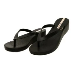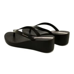 Les chaussures sont dans une version noire exclusive, les sangles de maintien du pied sont en matière synthétique de haute qualité, tandis qu’elles sont décorées d’un motif or-noir stylisé sur une tresse. Un tel motif et une coupe de style japonais sont à la fois très classiques et à la fois éloquents et originaux. Nous allons assortir avec succès ce modèle de chaussures à la plupart des créations de vacances élégantes, et nous ajouterons quelques centimètres grâce aux semelles hautes.