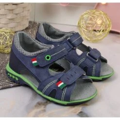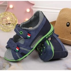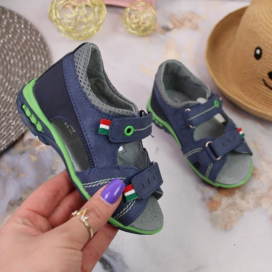Sandales KORNECKI confortables. La tige plus haute assure la stabilité du pied du petit enfant, tandis que la construction garantit la liberté de mouvement des doigts. La semelle intérieure en cuir est profilée et la semelle est légère, flexible et antidérapante.