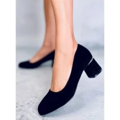 Escarpins femme à petit talon de 5 cm de haut. C’est un modèle exceptionnellement galbé avec des nez confortables et arrondis. Ils captiveront sûrement les amateurs de styles classiques … Un talon stable et une semelle intérieure en cuir naturel vous feront les aimer encore plus 🙂 Matériau extérieur – daim écologique.