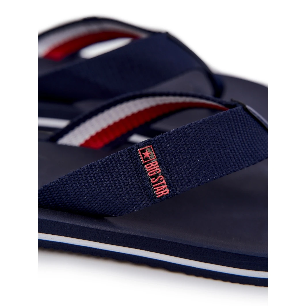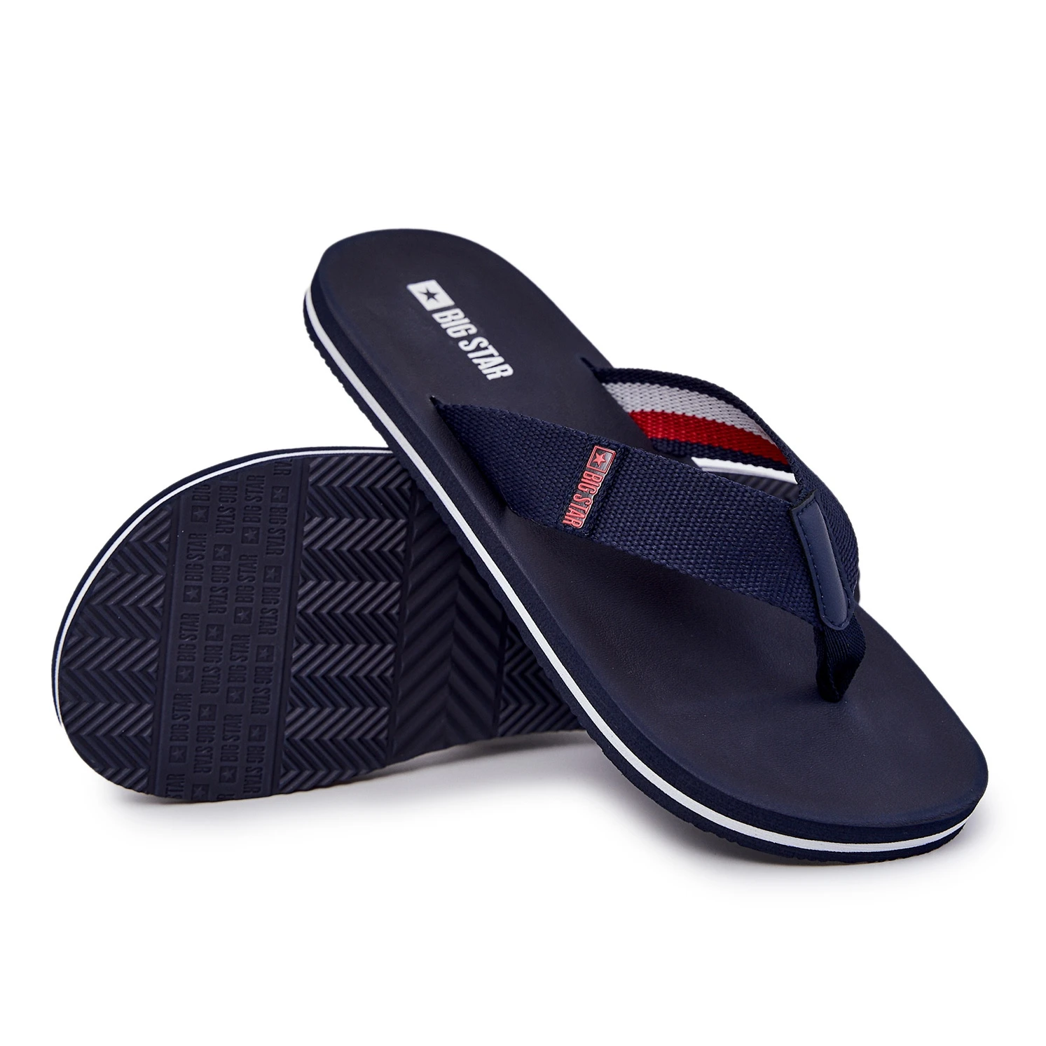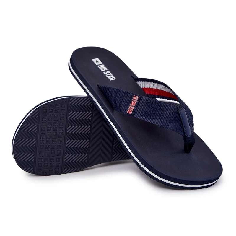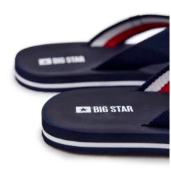 Tongs classiques pour hommes de la marque polonaise Big Star. Les pantoufles sont fabriquées en mousse de haute qualité. La sangle en tissu vous assurera un confort d’utilisation. Logos décoratifs sur les bretelles et l’insert. Léger et très confortable. Parfait pour la piscine ou la plage. Vous devez absolument les avoir ! Lorsque vous choisissez une taille, veuillez utiliser le tableau des tailles.