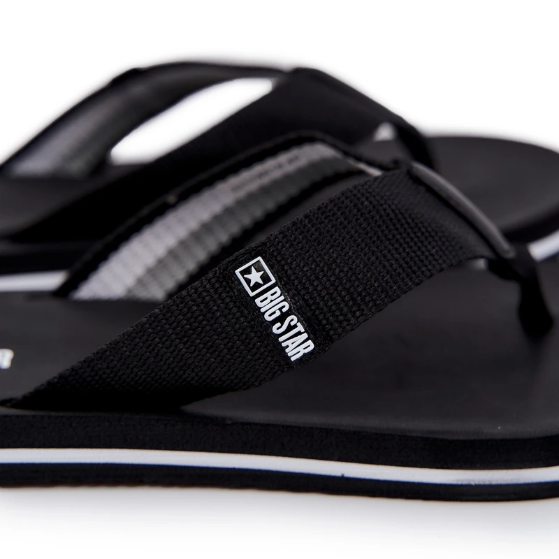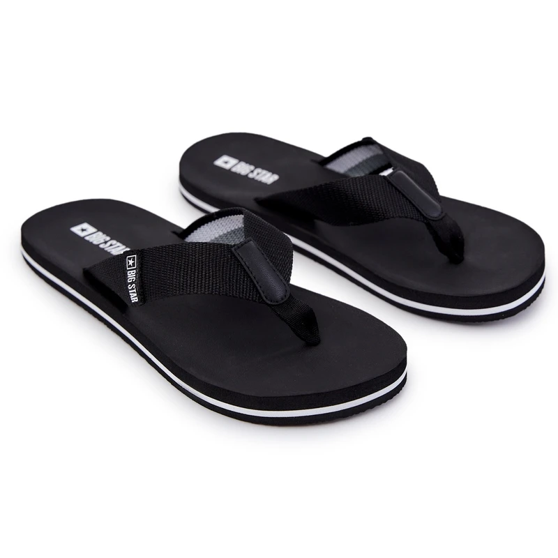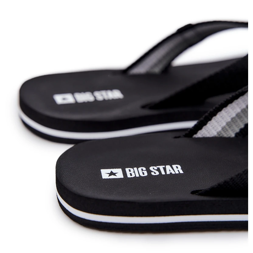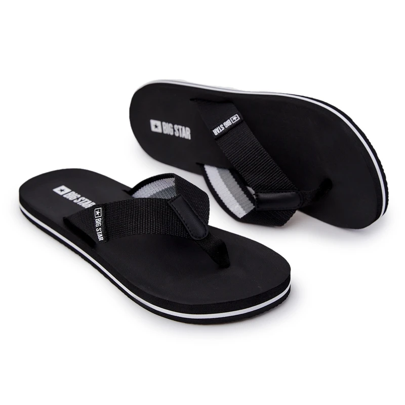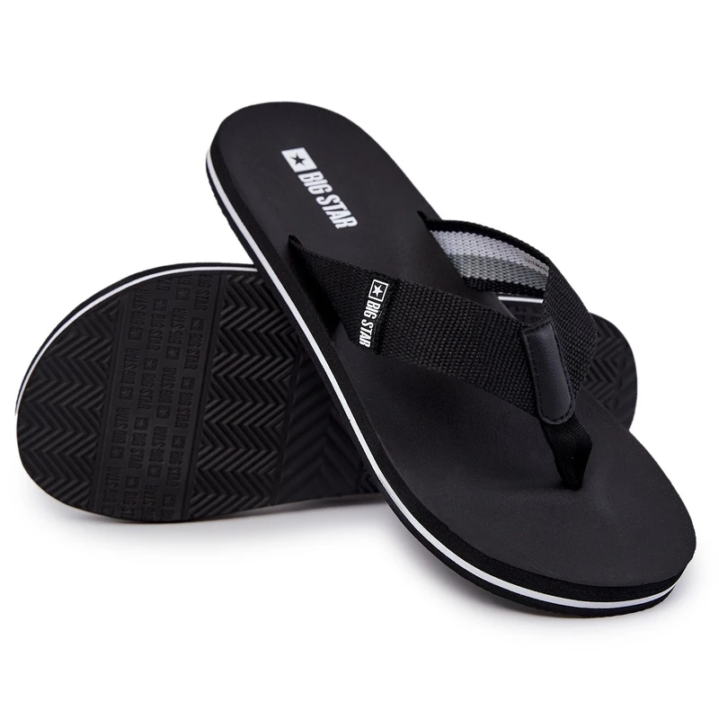 Tongs classiques pour hommes de la marque polonaise Big Star. Les pantoufles sont fabriquées en mousse de haute qualité. La sangle en tissu vous assurera un confort d’utilisation. Logos décoratifs sur les bretelles et l’insert. Léger et très confortable. Parfait pour la piscine ou la plage. Vous devez absolument les avoir ! Lorsque vous choisissez une taille, veuillez utiliser le tableau des tailles.