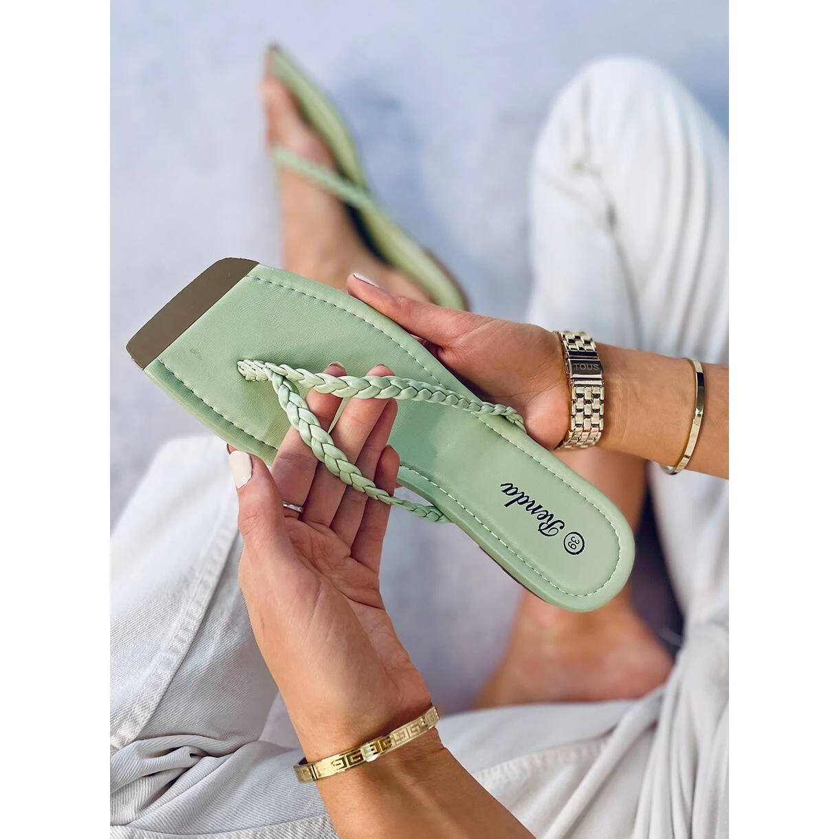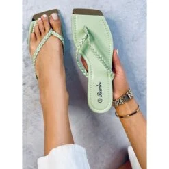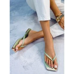 Pantoufles élégantes pour femmes – tongs. Ce design unique à rayures tressées a le design le plus en vogue avec des orteils carrés. Avec ces chaussures vous attirerez tous les regards ! Une semelle plate est un gage de confort et de praticité. Matériau extérieur – cuir artificiel.