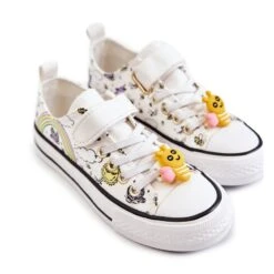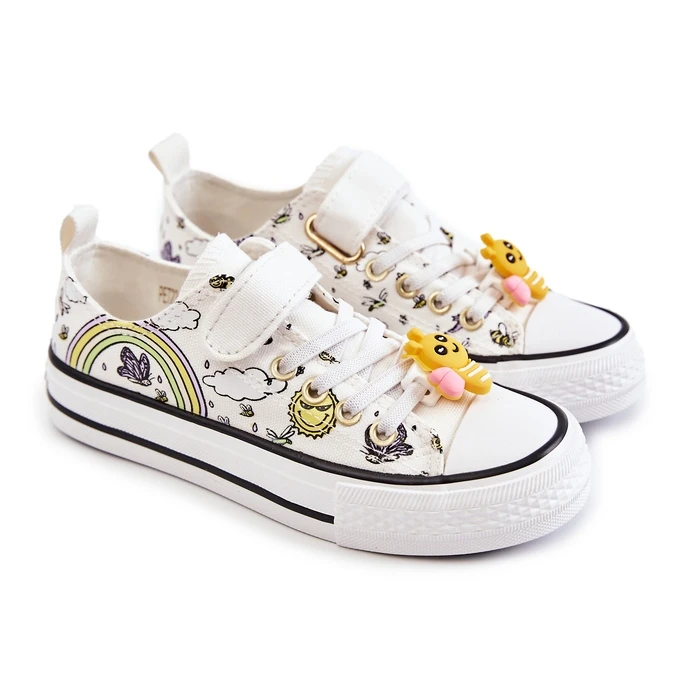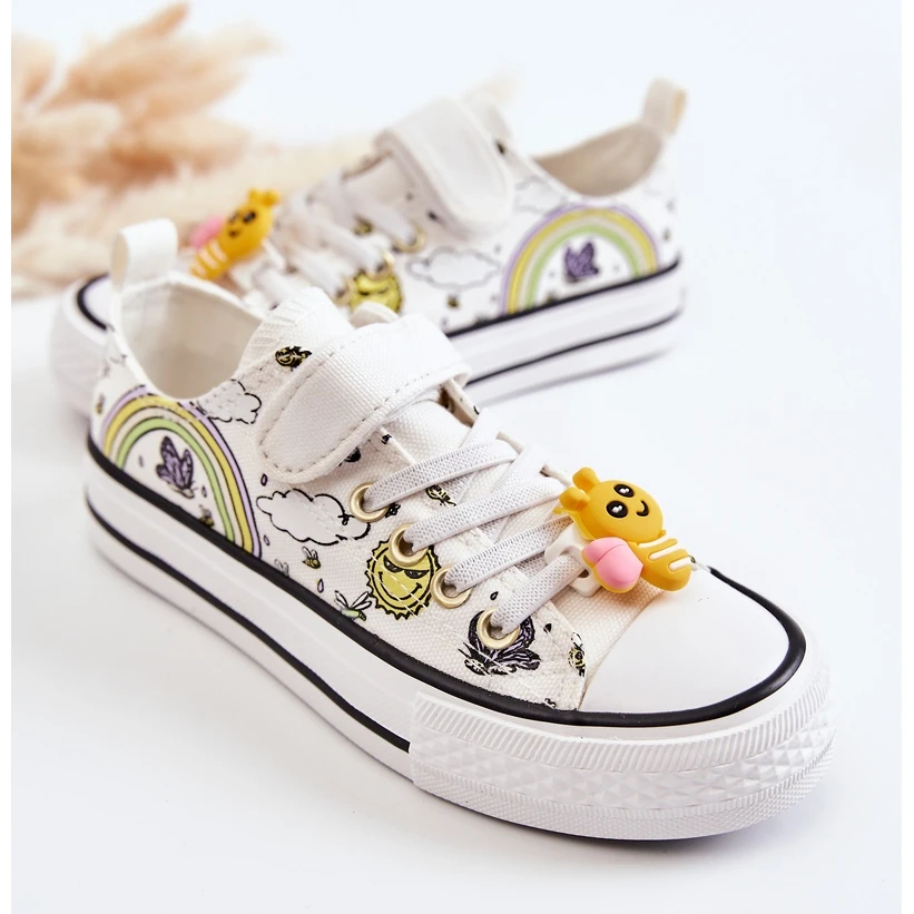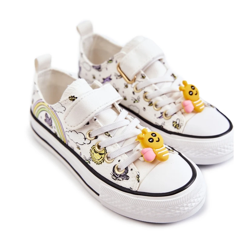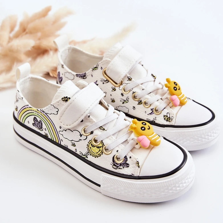 Merveilleuses, les baskets en tissu ont un charmant élément en caoutchouc sur les élastiques imitant les lacets en forme d’abeille. La pointe est renforcée. La semelle antidérapante est parfaite pour jouer dans la cour. Fermeture velcro. Une semelle intérieure en matière douce assurera un confort à chaque pas. Lorsque vous choisissez une taille, veuillez utiliser le tableau des tailles.