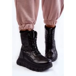 Les bottes de neige femme seront parfaites lors des journées glaciales ! Ils sont montés sur une plate-forme massive avec des rainures sur les côtés. Le modèle est classiquement lacé, ce qui permettra de bien ajuster le chaussant à la largeur de la jambe. De plus, ils ont une fermeture éclair sur le côté de la tige. Les bottes ont une isolation en fourrure à l’intérieur. Lorsque vous choisissez une taille, veuillez utiliser le tableau des tailles.