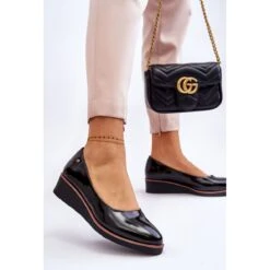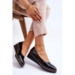 Les escarpins classiques sont en cuir écologique. Montée sur une plate-forme délicate et un petit talon compensé. Sur le côté de la tige se trouve un emblème décoratif avec un logo. Une semelle intérieure souple en cuir naturel et un contrefort de talon renforcé assureront confort et stabilité. Les escarpins ont un bout en amande. Lorsque vous choisissez une taille, veuillez utiliser le tableau des tailles.