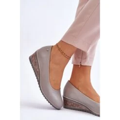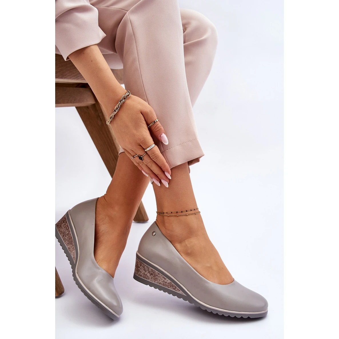 Escarpins compensés confortables et élégants et une plate-forme délicate. Les chaussures sont en cuir écologique. De plus, ces escarpins ont un emblème logo décoratif sur le côté de la tige et un contrefort de talon renforcé. La semelle intérieure souple en cuir naturel assurera une utilisation confortable. Rejoignez le groupe de clients ravis et profitez de votre nouvelle paire de chaussures ! Lorsque vous choisissez une taille, veuillez utiliser le tableau des tailles.