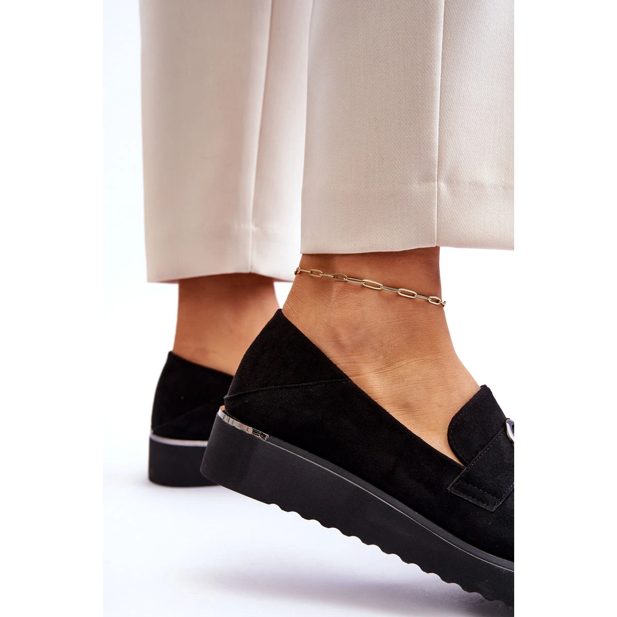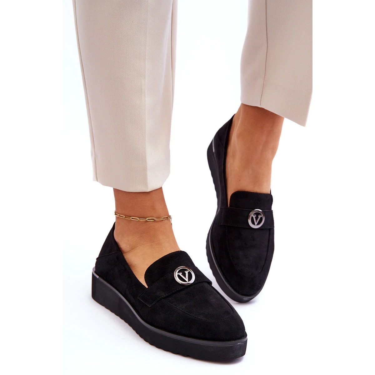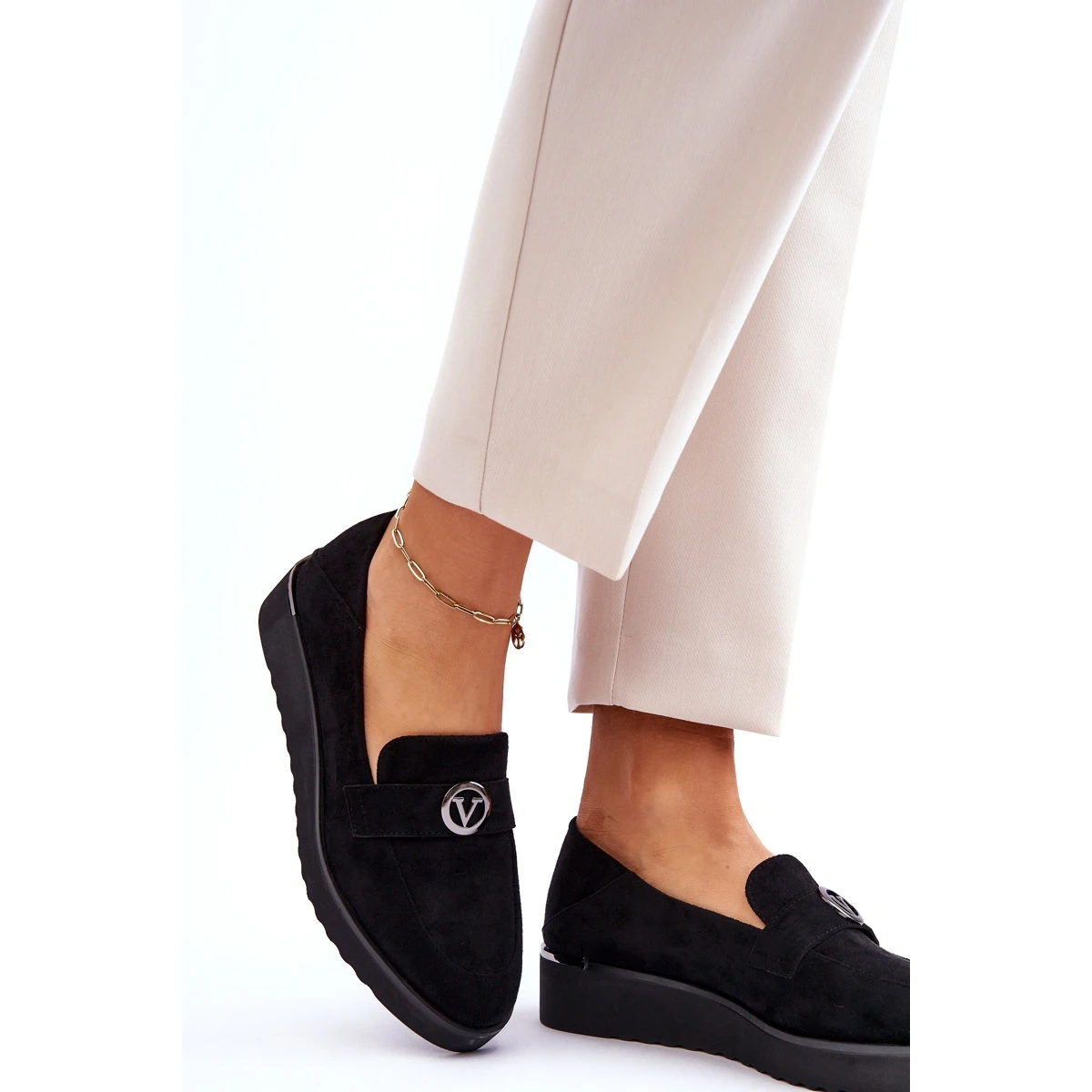Les mocassins pour femmes sont fabriqués en cuir écologique de haute qualité. Ils ont une ceinture avec une décoration en forme de cercle et la lettre V à l’avant.Les mocassins sont fixés sur une plate-forme avec un coin bas. La semelle intérieure souple en cuir naturel assurera le confort lors de l’utilisation. Lorsque vous choisissez une taille, veuillez utiliser le tableau des tailles.