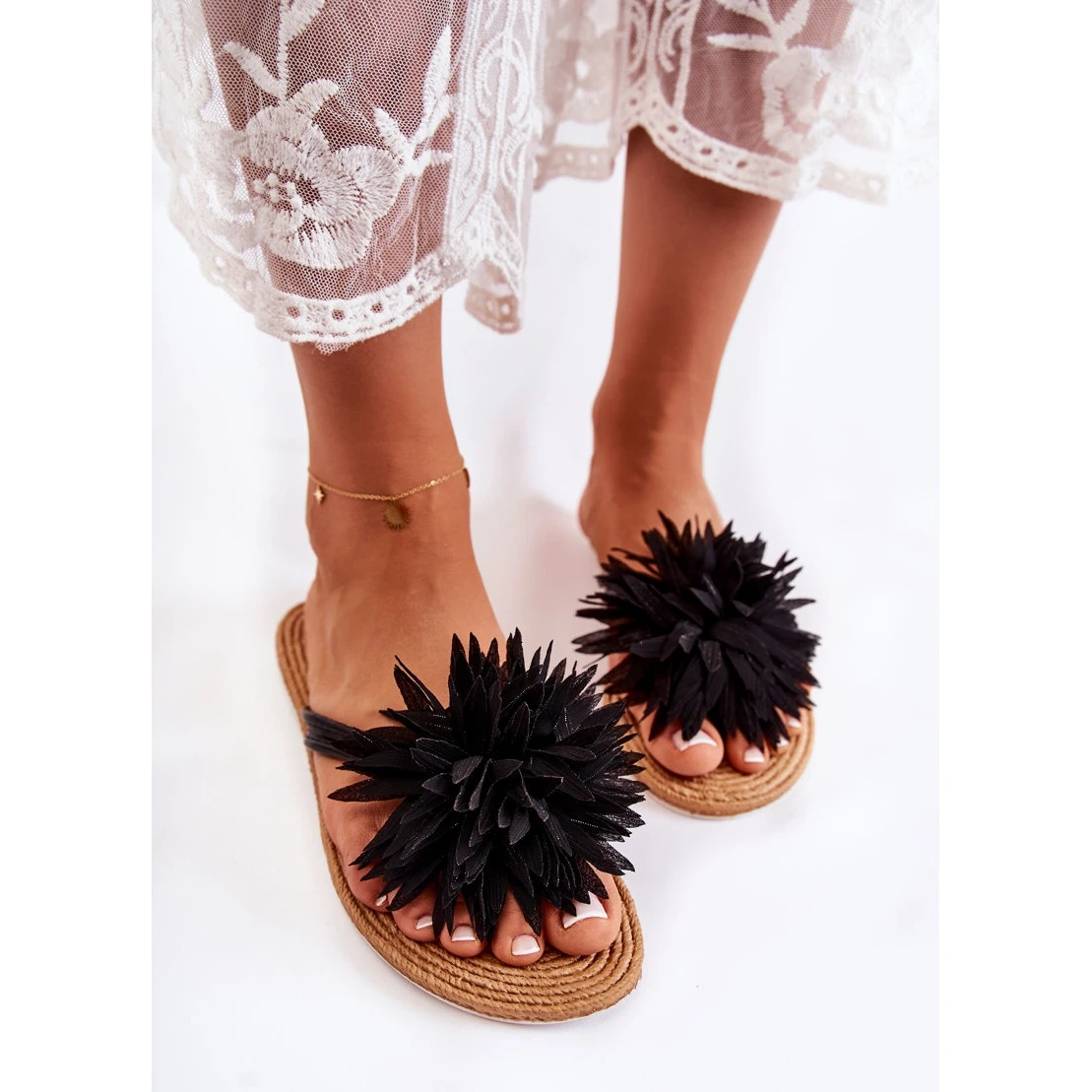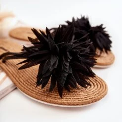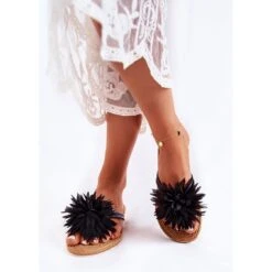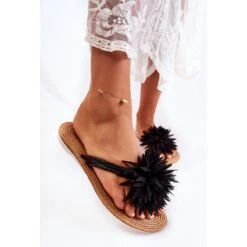 Chaussons femme avec ornements en tissu sur le devant. Fabriqué en cuir écologique. Ce modèle a un insert en mousse plastique. Tongs montées sur un talon plat, grâce auxquelles elles sont très confortables à utiliser. De plus, la semelle est antidérapante. Une coupe mode qui sera parfaite pour les journées chaudes ! Lorsque vous choisissez une taille, veuillez utiliser le tableau des tailles.