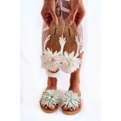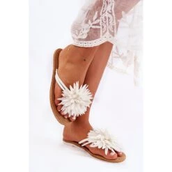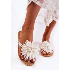Chaussons femme avec ornements en tissu sur le devant. Fabriqué en cuir écologique. Ce modèle a un insert en mousse plastique. Tongs montées sur un talon plat, grâce auxquelles elles sont très confortables à utiliser. De plus, la semelle est antidérapante. Une coupe mode qui sera parfaite pour les journées chaudes ! Lorsque vous choisissez une taille, veuillez utiliser le tableau des tailles.