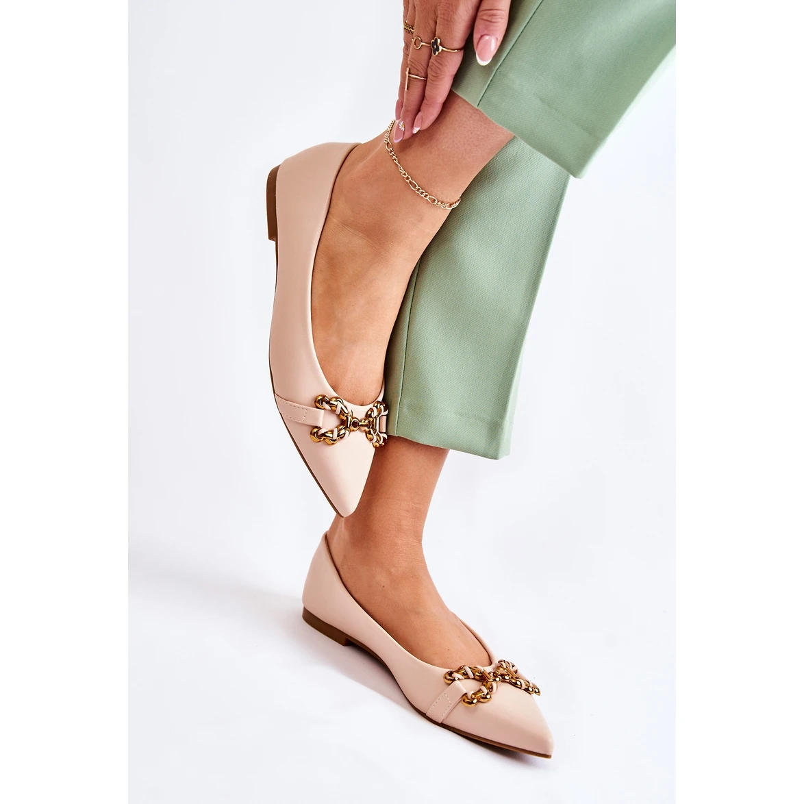 Ballerines pour femme avec élément décoratif en plastique sur le devant. Les chaussures sont entièrement fabriquées en cuir écologique. Les ballerines sont extrêmement confortables grâce à la semelle intérieure en cuir écologique. Ils ont un bout pointu. Ce modèle de ballerine complètera bon nombre de vos stylisations. Montée sur un talon plat avec une semelle antidérapante. Découvrez également le reste de la collection de ballerines ! Lorsque vous choisissez une taille, veuillez utiliser le tableau des tailles.